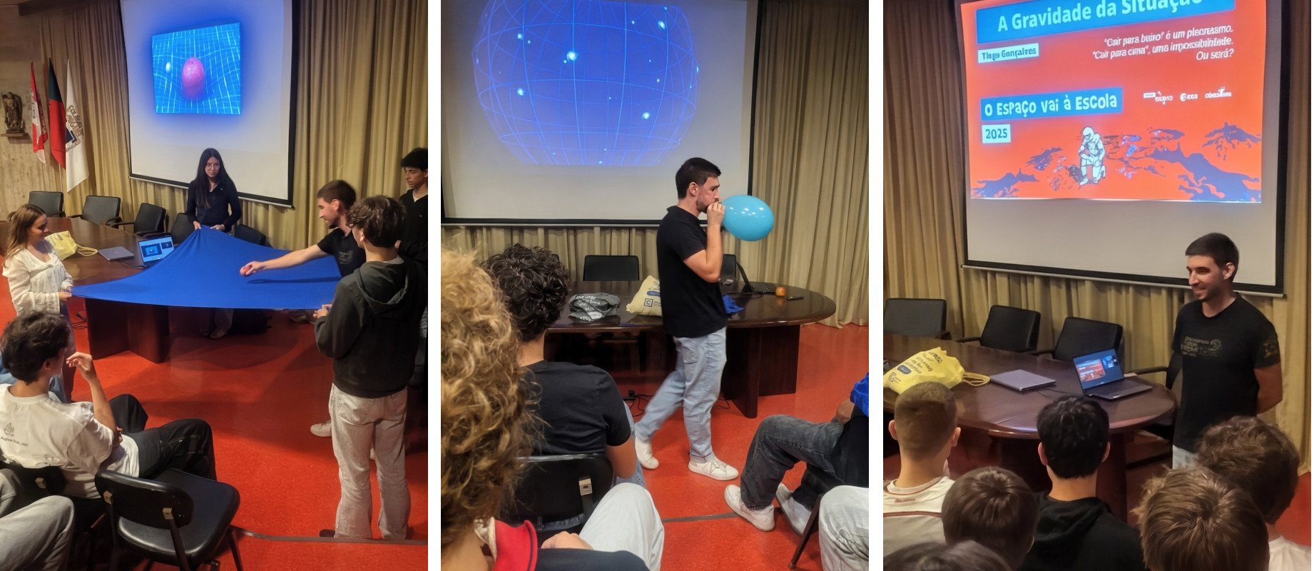 Com o mote provocador “Cair para baixo é um pleonasmo. Cair para cima, uma impossibilidade. Ou será?”, o Tiago levou os alunos a explorar algumas das ideias mais fascinantes da Física moderna: o papel da gravidade na formação de estrelas, planetas e galáxias, a noção de espaço-tempo e as atuais investigações sobre os limites desta força fundamental. Mais do que uma aula de Física, a atividade deixou no ar a certeza de que aprender é também uma forma de gravitar em torno do que realmente nos move — a vontade de compreender o mundo e de o tornar um lugar melhor.