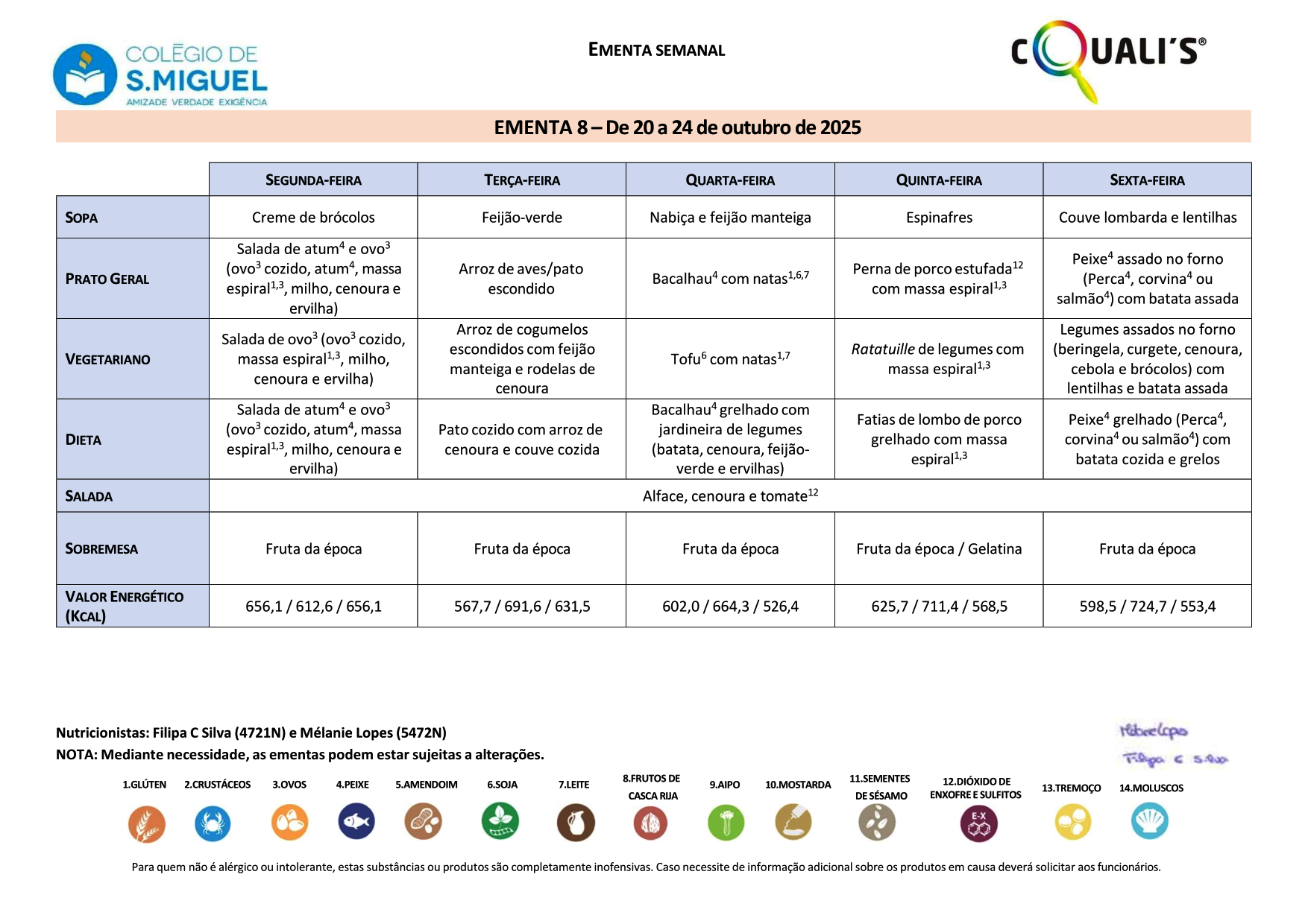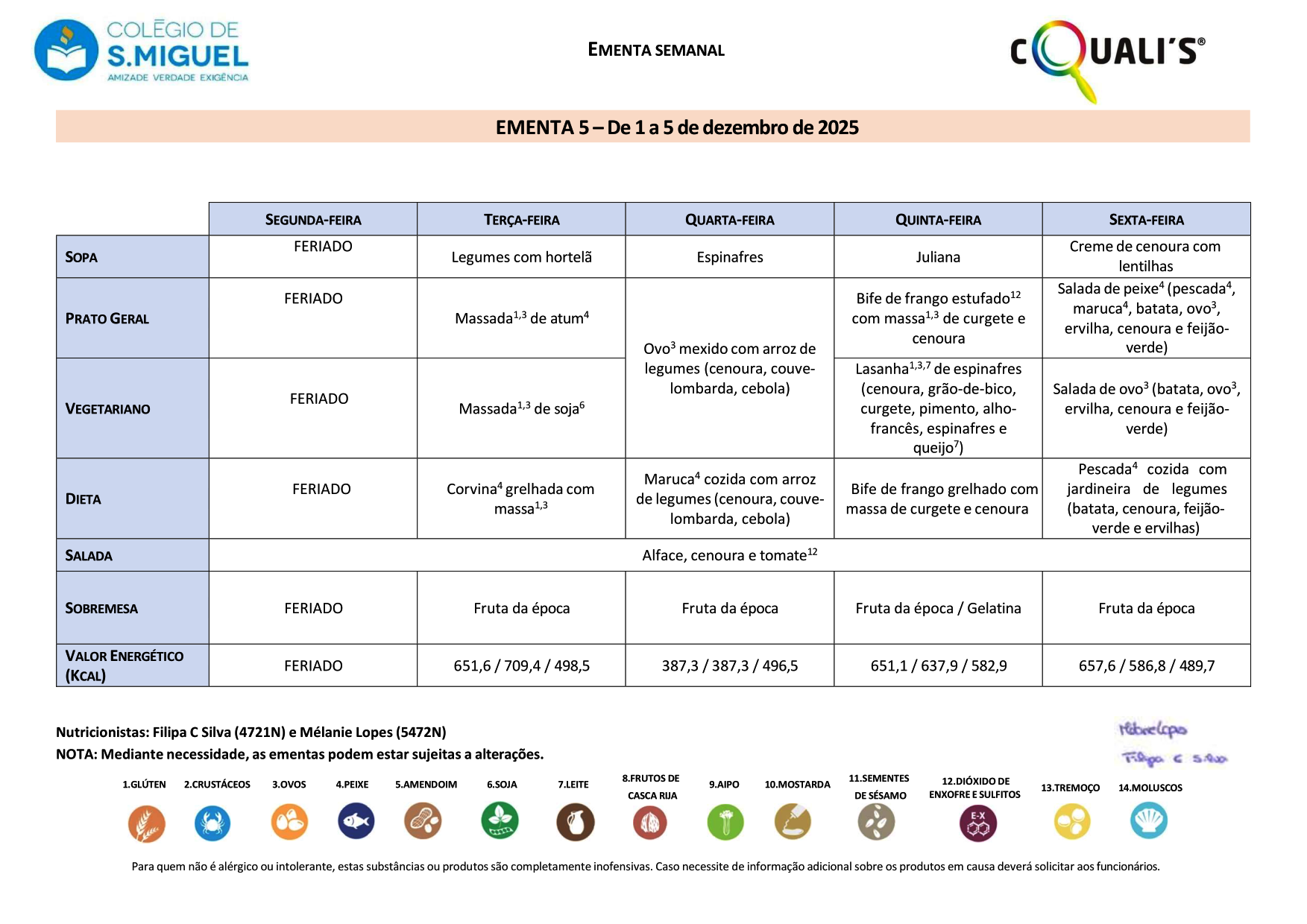 • Ementa da Semana